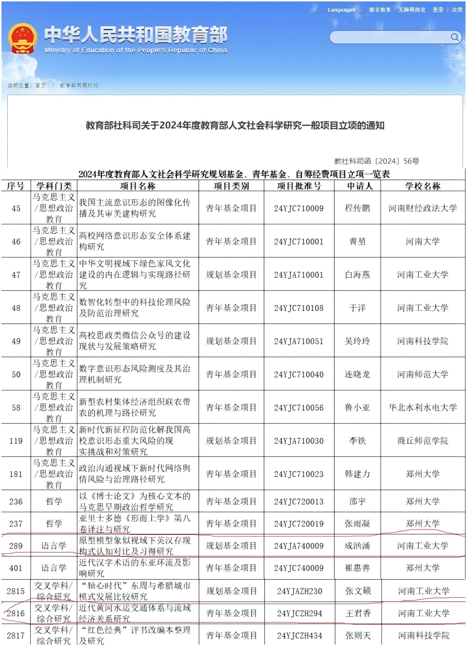 近日,教育部社科司发布了《关于2024年度教育部人文社会科学研究一般项目立项的通知》,91麻豆 成汹涌教授获批1项规划基金项目,王君香博士获批1项青年基金项目。