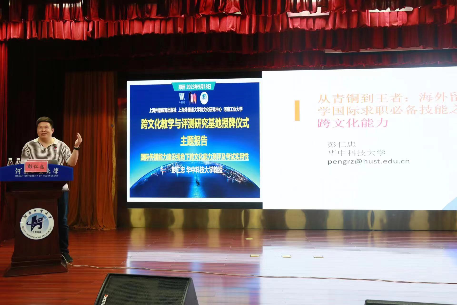 揭牌仪式结束后,彭仁忠教授以“从青铜到王者:海外留学国际求职必备技能之跨文化能力”为题为与会师生带来了一场精彩的讲座。他从日常工作和留学生活情境中的跨文化冲突与沟通案例出发,生动风趣地引出了跨文化意识与交际能力的重要性,解释了中国语境下的跨文化能力构成与内涵,对比分析了国内外跨文化理论的发展,详细介绍了跨文化能力测评的发展与实践。上海外语教育出版社跨文化能力测评中心王旭雯老师对跨文化能力考试进行了简要介绍。
