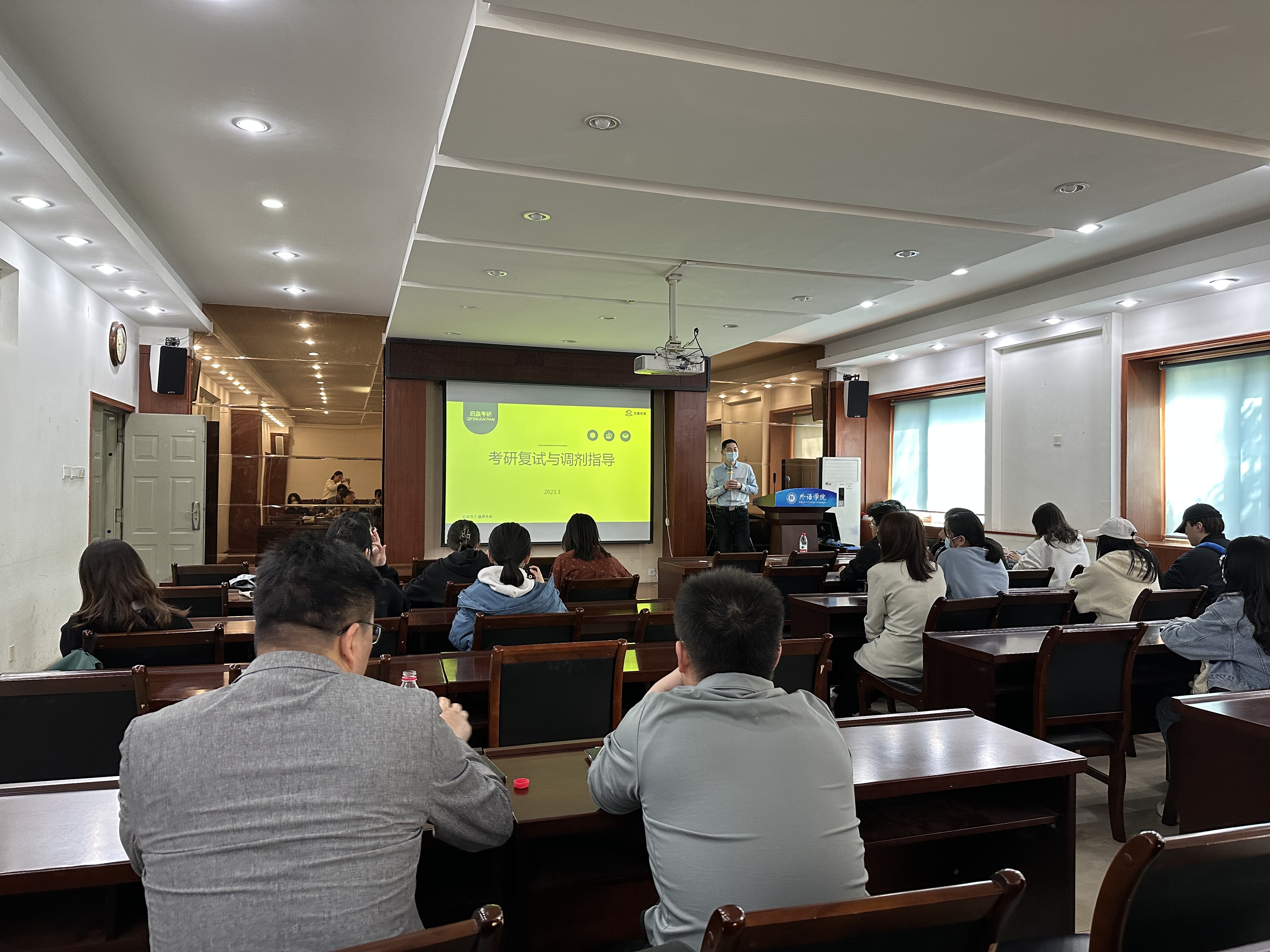 3月13日下午,调剂考生辅导特邀新东方教师在5225会议室进行,与会教师详细介绍了近年来考研复试调剂的政策变化情况及调剂规则,并围绕调剂流程、信息收集渠道调剂注意事项两个方面,指导同学们如何充分了解学校、专业和调剂情况,如何选择研究生导师,如何结合自身特点制作一份有核心竞争力的简历,如何有针对性地准备专业复试。建议同学们要主动思考、积极行动,学会坚持并保持良好的心态,并不断提升学习能力以及综合素质。