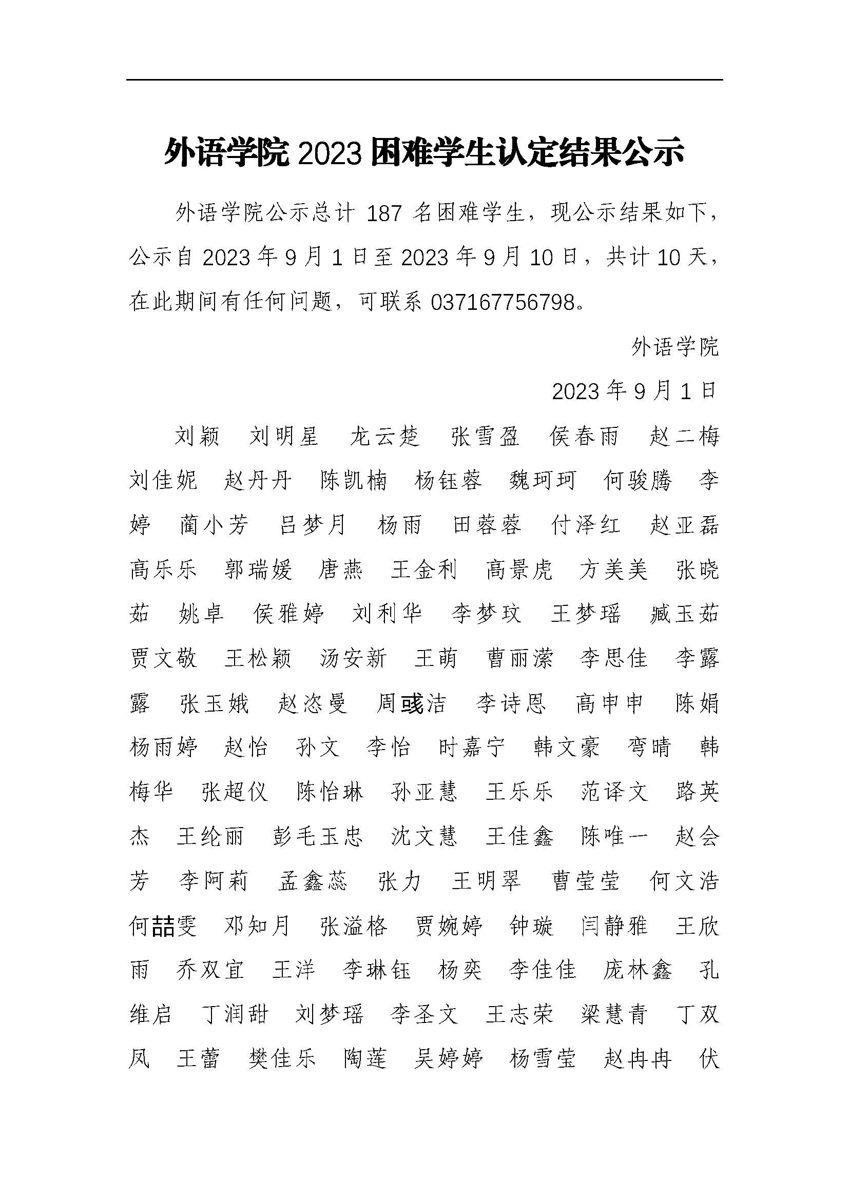 91麻豆 2023年家庭经济困难学生认定结果公示