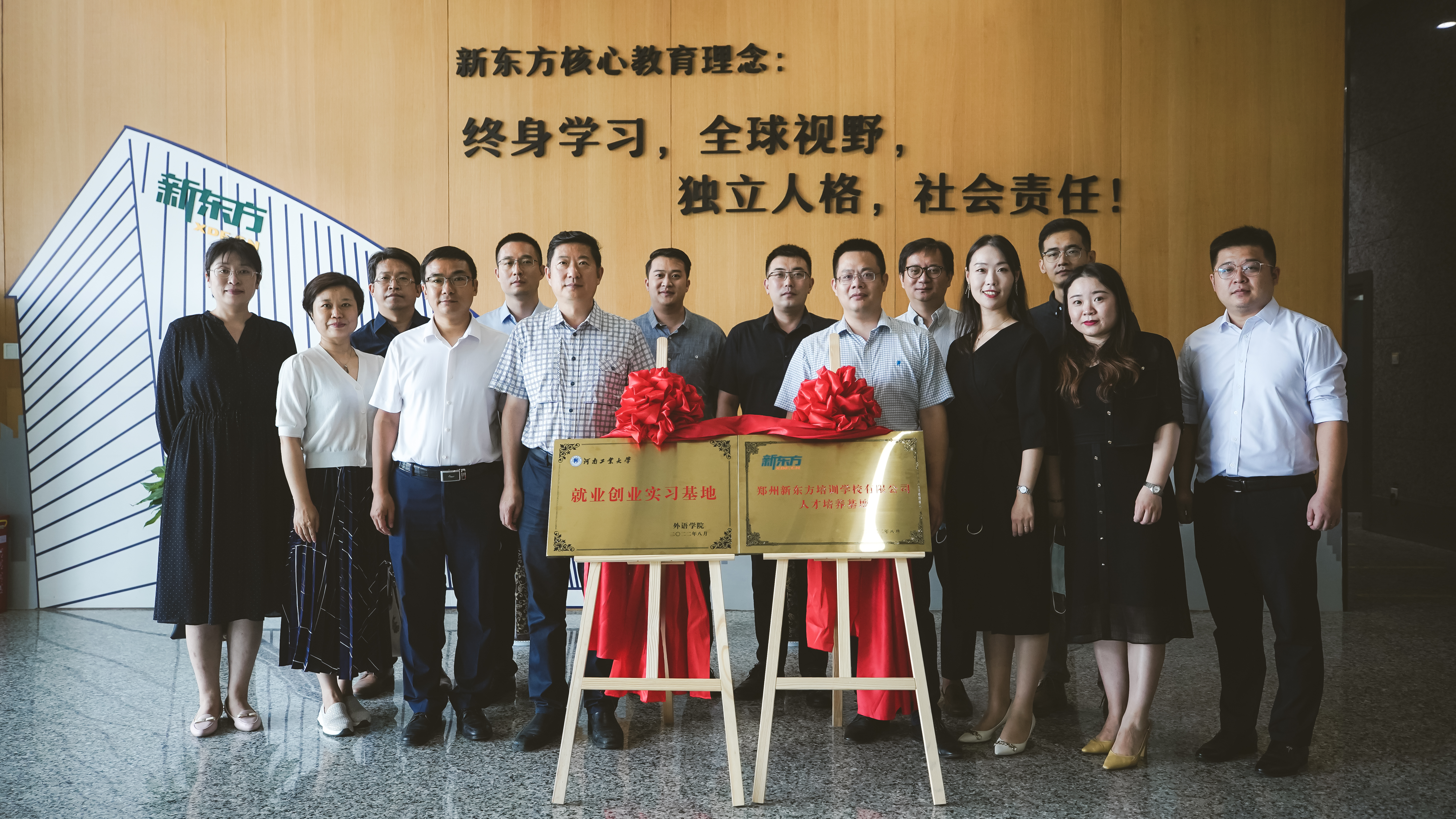 就业创业实习基地”“郑州新东方培训学校有限公司人才培养基地”揭牌。王云涛代表学院聘请郑二卫、陈玲担任就业创业导师,并为二位老师颁发了聘书。
