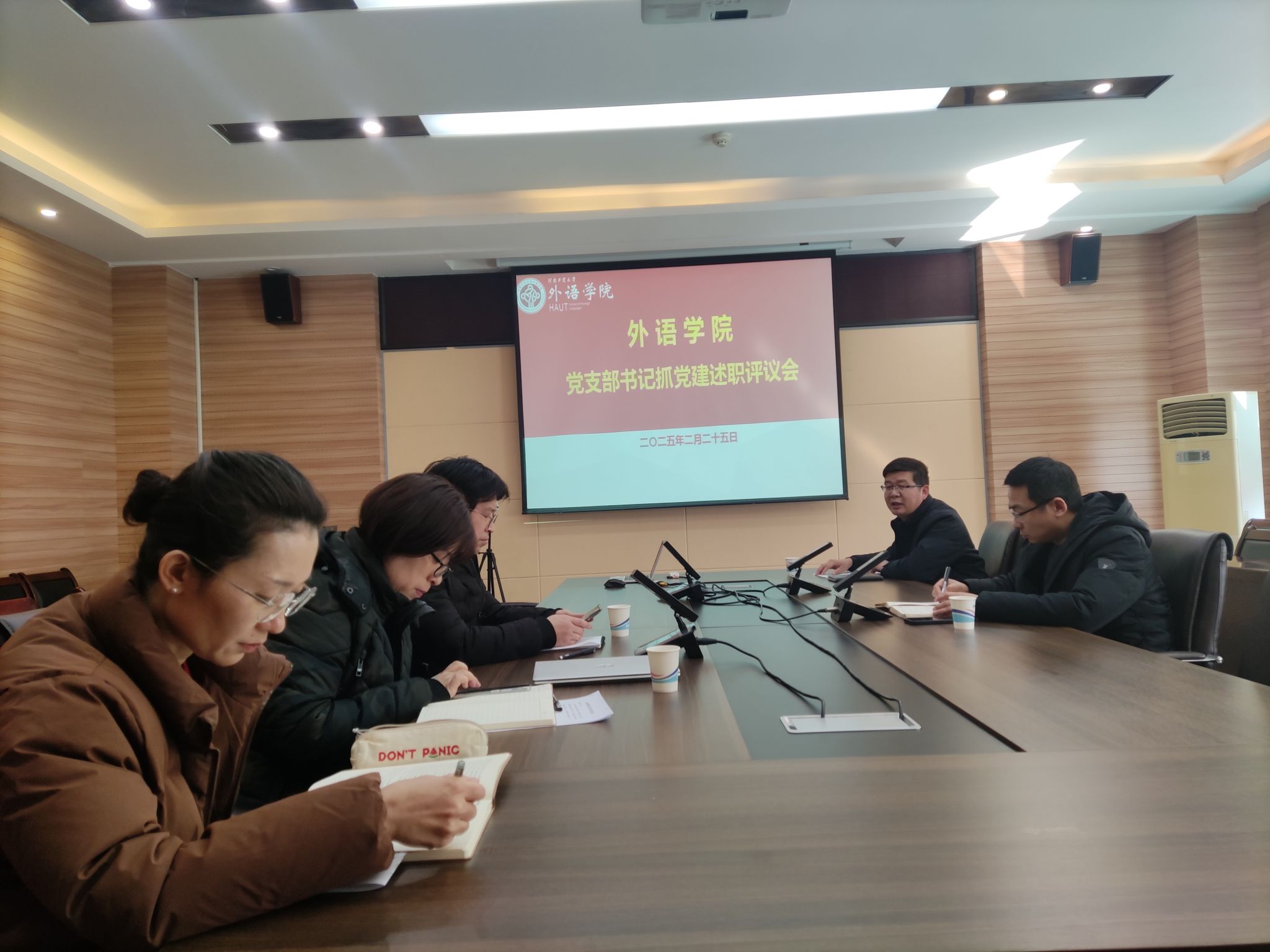 在5231会议室召开2024年度党支部书记抓党建述职评议会。学院党委书记王云涛、党委副书记王晓东及各基层党支部书记参加会议,评议会由王晓东主持。
