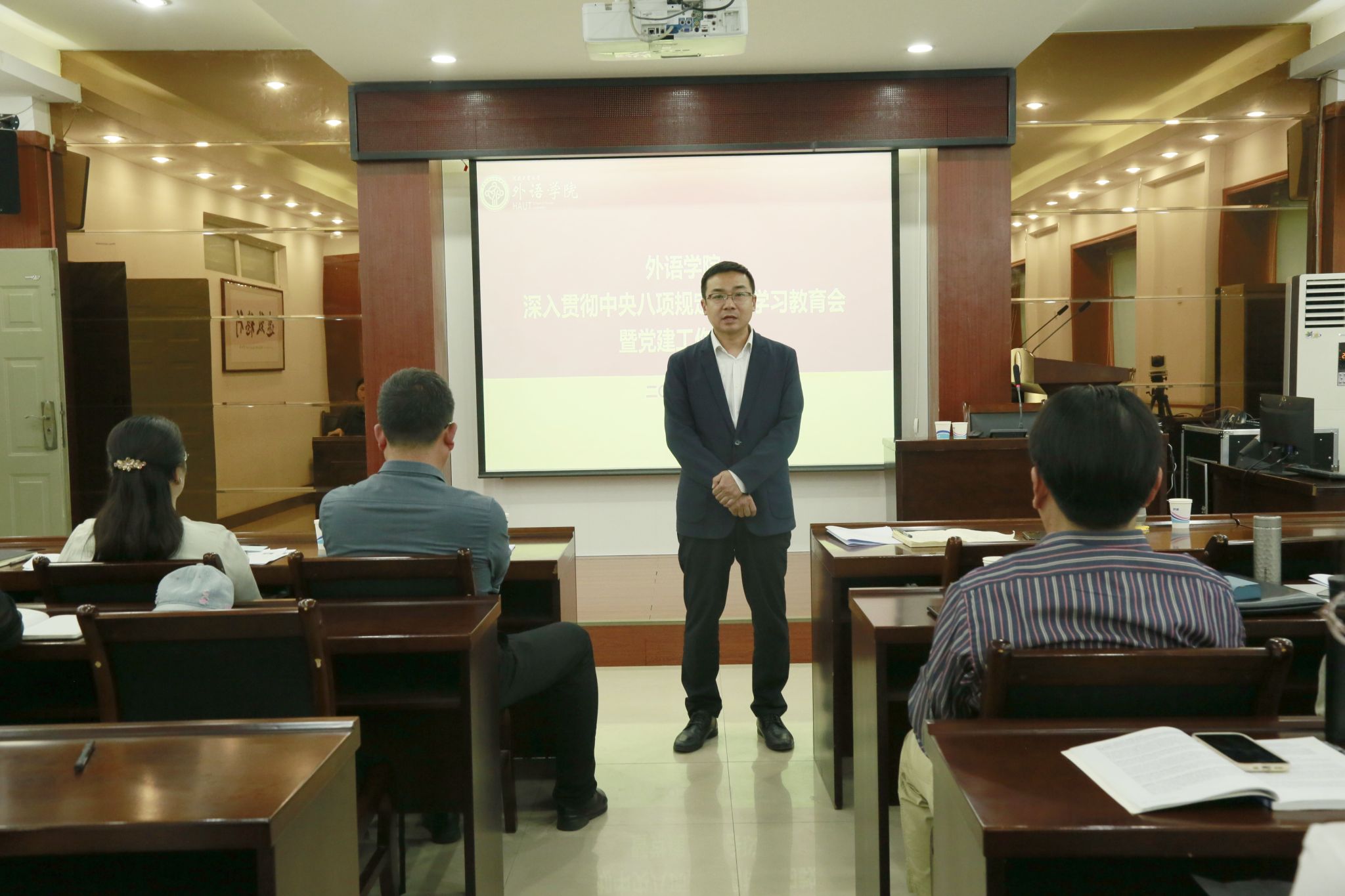 4月22日下午,91麻豆 在5225会议室召开深入贯彻中央八项规定精神学习教育会暨党建工作推进会。学院领导班子成员、全体党员参加,会议由学院党委副书记、纪委书记王晓东主持。
