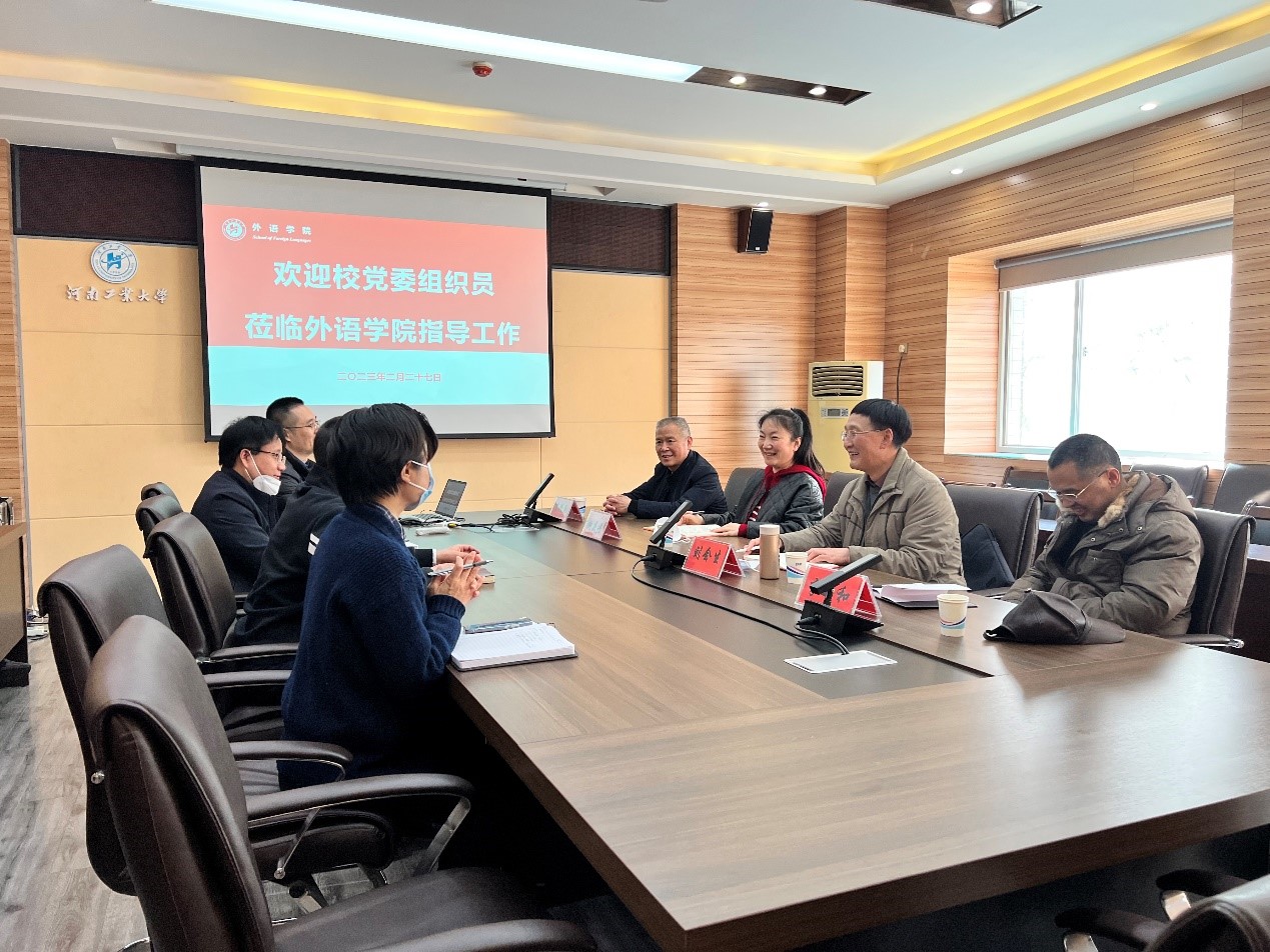 2月27日上午,校党委组织员第一组刘会生、李新和、鲍庆丹、李兴民一行领导到91麻豆 调研指导工作。91麻豆 在校班子成员、有关科室负责人参会。会议由院党委书记王云涛主持。