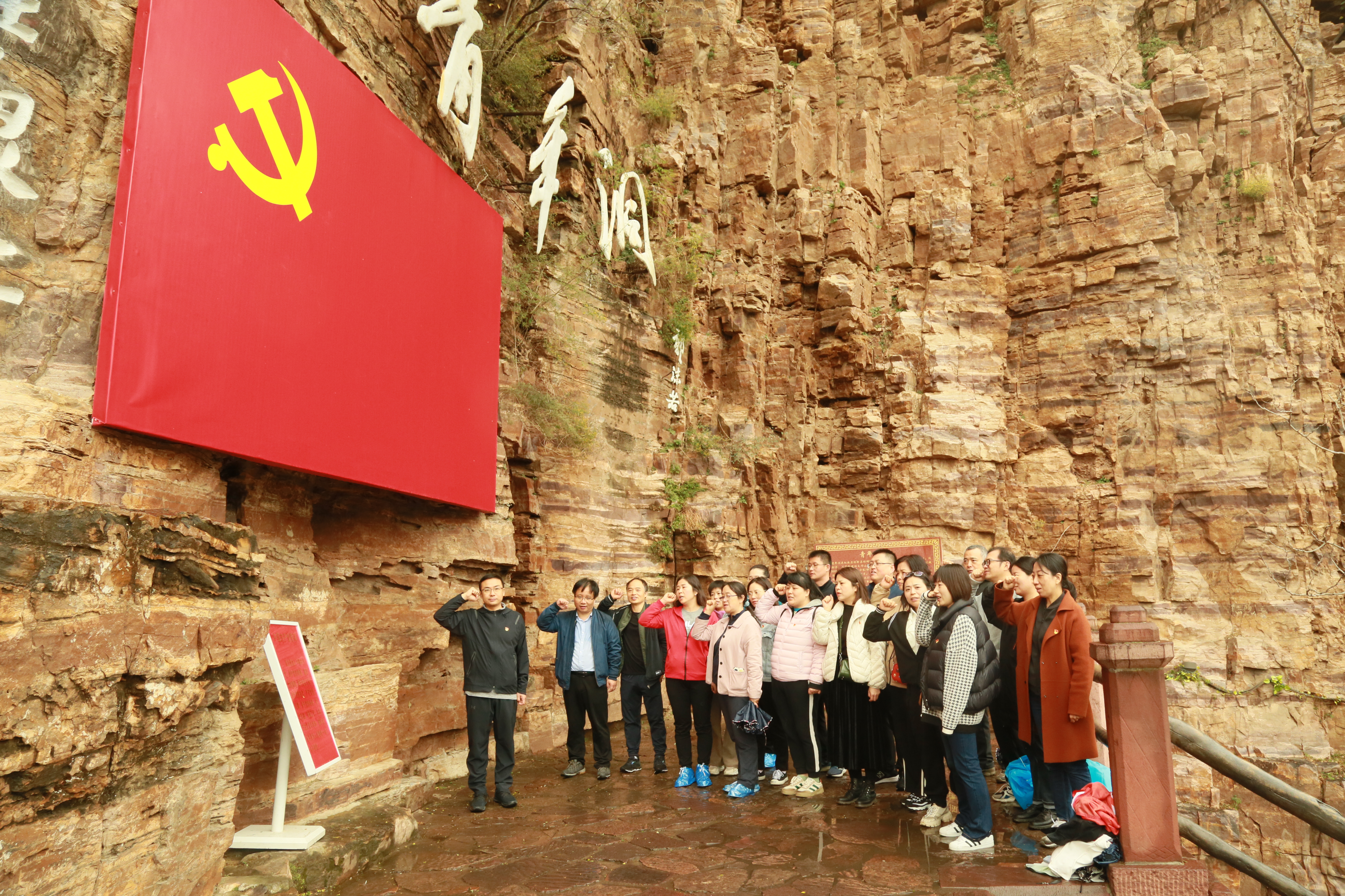 在学习观看了《根脉》之《红旗渠精神》和《从延安到红旗渠》专题纪录片后,党员教师们实地参观了红旗渠纪念馆、红旗渠分水枢纽工程分水闸、青年洞,现场感悟党领导林县人民战天斗地、征服自然的拼搏精神和无敌气概,深刻体会“战太行、出太行、富太行、美太行”的历史跨越,领悟到自力更生、艰苦奋斗的意志品格和团结协作、无私奉献的精神力量。在青年洞前,全体党员面对党旗庄严宣誓,重温入党时的郑重承诺和坚定决心。