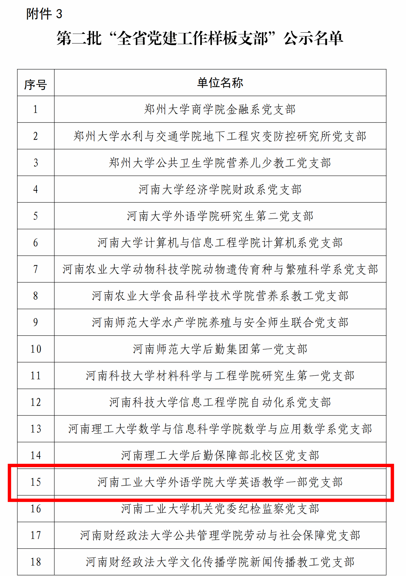 近日,中共河南省委教育工作委员会印发《关于公布第二批全省高校党建工作强基引领“三级联创”评选结果的通知》(豫教工委〔2024〕32号),91麻豆