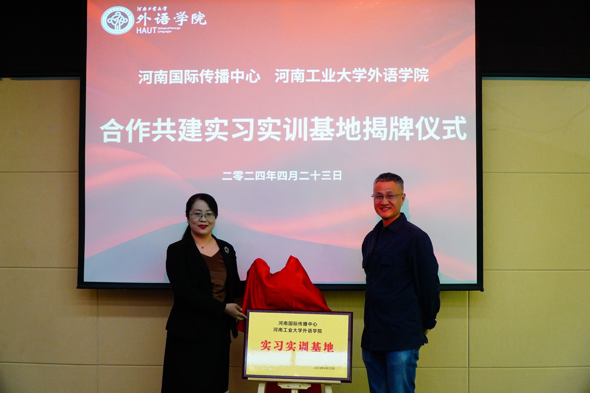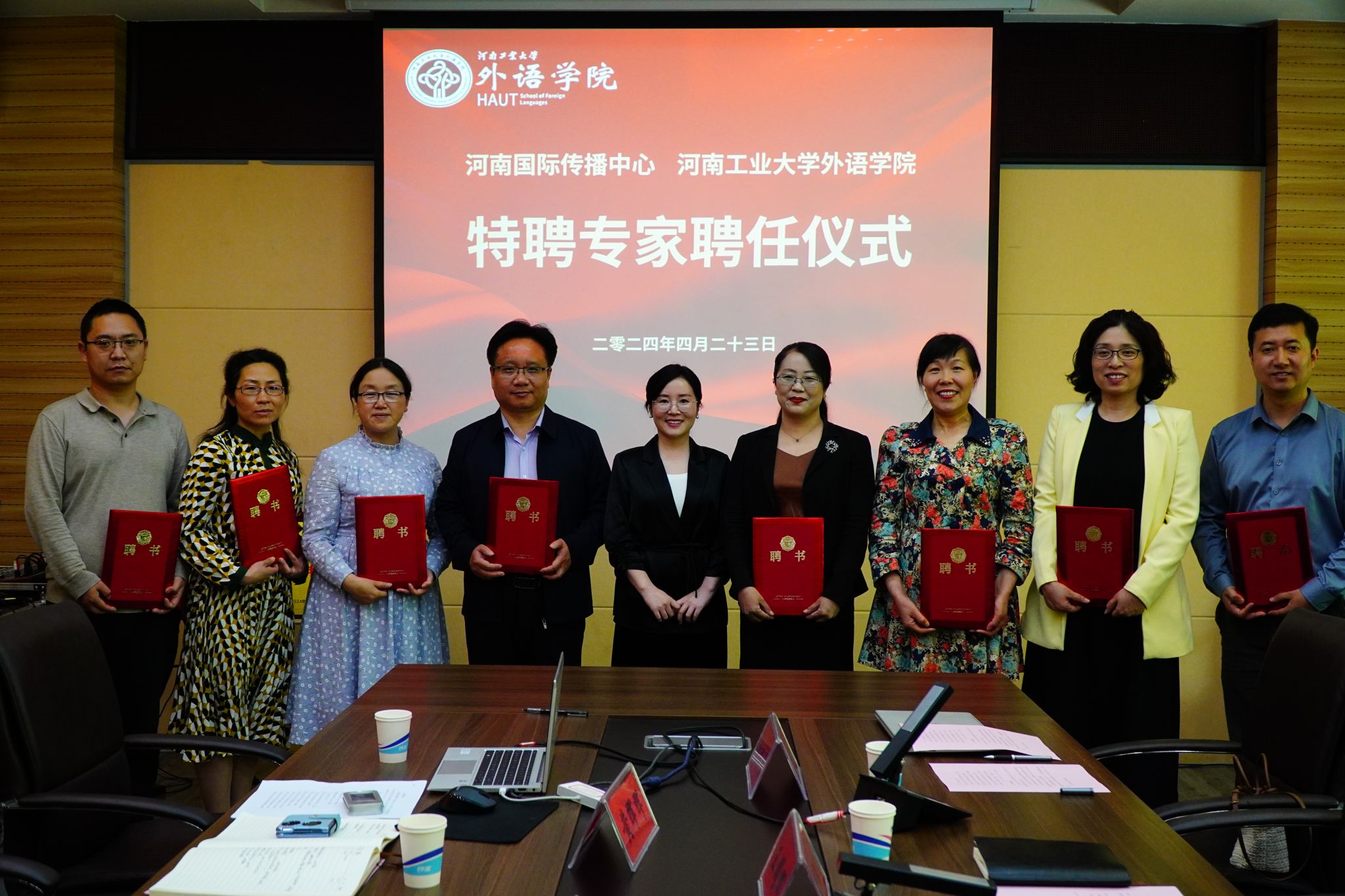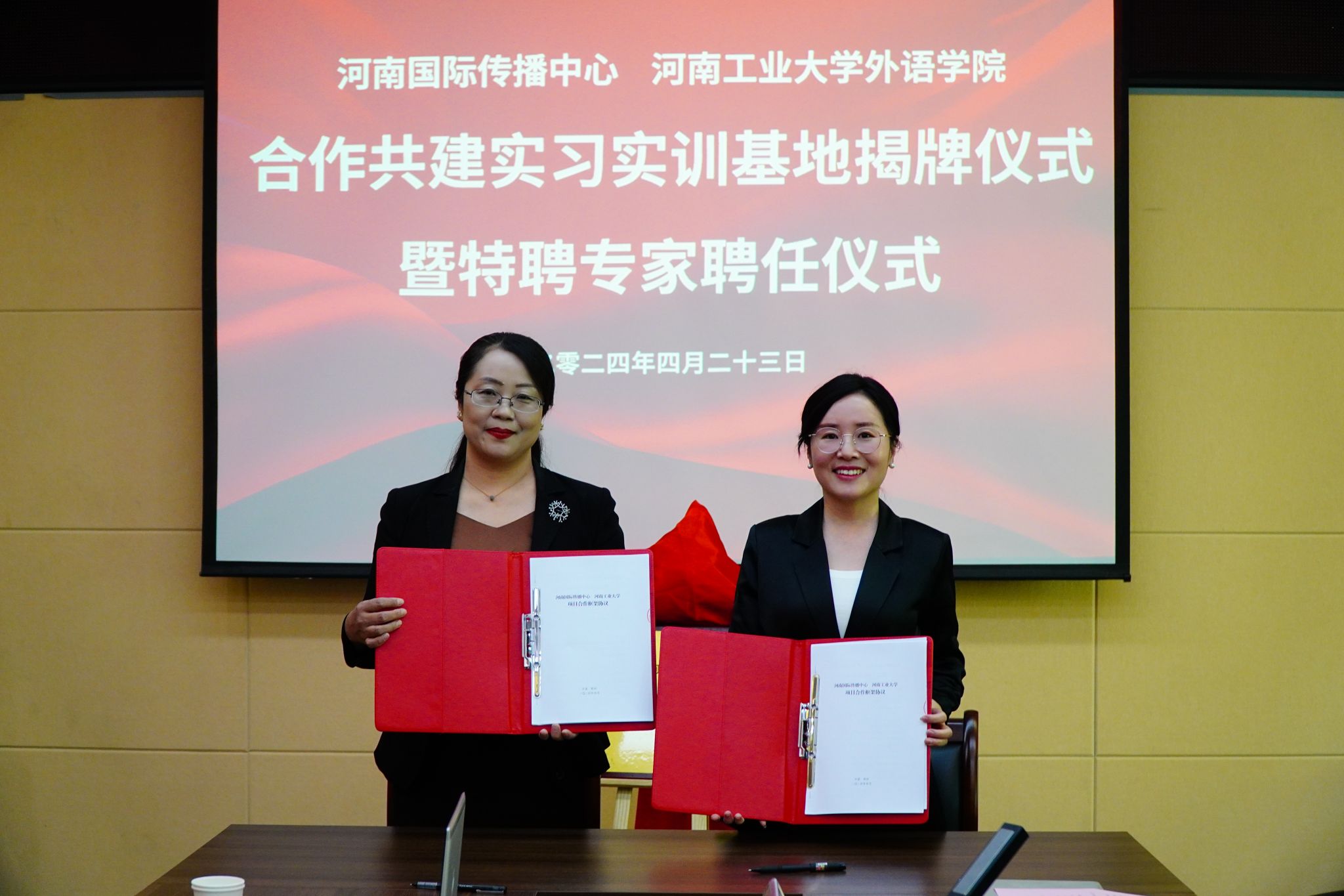 英语、西班牙语、日语语种共17位老师受聘为河南国际传播中心专家团成员。双方共同签署了合作框架协议。同时,双方合作共建实习实训基地正式揭牌。河南国际传播中心将依托自身平台优势,为91麻豆