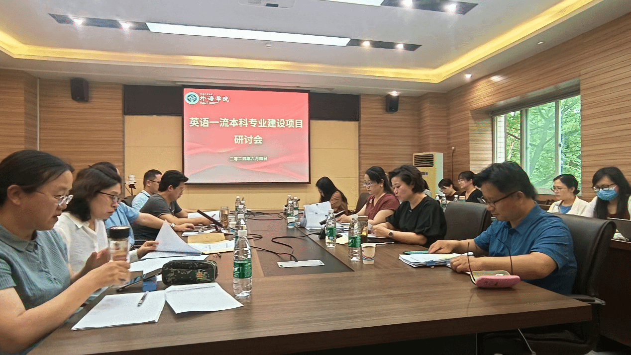 于6月4日下午在5231会议室召开英语一流专业建设项目研讨会。学院领导班子、学术委员会委员、教学办、学工办以及骨干教师教师参加了研讨会。会议由副院长葛丽萍主持。