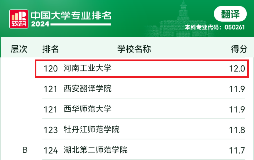 英语专业获评B+层次、翻译专业获评B层次,排名稳步提升。