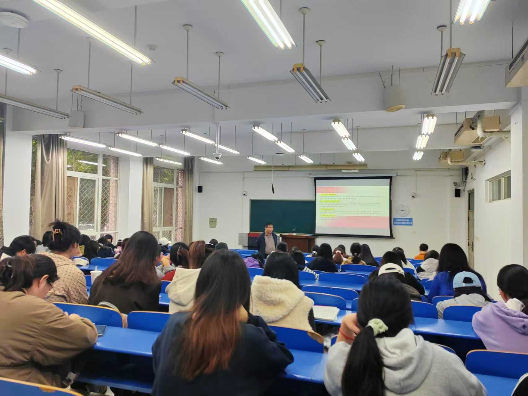 在考研工作推进阶段,副院长沈国荣结合近年研究生报考态势、招生格局、命题趋向、培养提质等问题,从科学选择、全面规划、坚持不懈、提升效率等多个方面进行系统解析,帮助学生清晰认知当前考研格局,提升报考的科学性以及备考的有效性。他鼓励同学们结合自身兴趣和职业规划,理性选择目标院校与专业,并提醒大家合理分配时间,以积极的心态面对备考过程中的挑战,充分利用校内外学习资源,为实现考研目标全力以赴。他还重点介绍了91麻豆