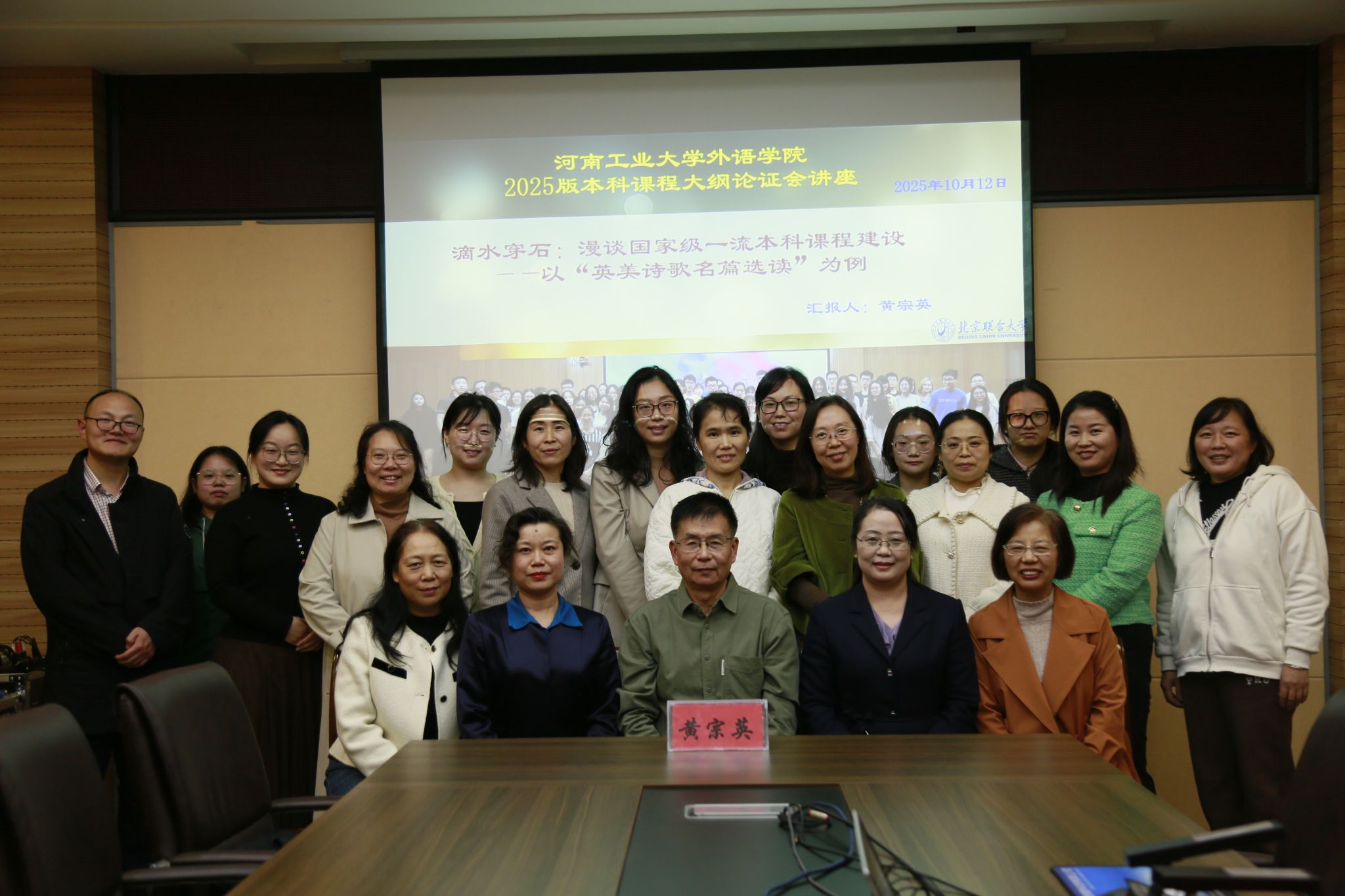 黄宗英教授以“滴水穿石:漫谈国家级一流本科课程建设 —— 以《英美诗歌名篇选读》为例”为主题,结合自身40多年国内外学习与教学实践,生动讲述了这门国家级一流本科课程从筹备到建成的心路历程。该课程在内容设计上解决了英诗历史长、作品多,内容难以取舍的问题,通过精准释读,解决了国内外同类教材注释简单的问题。黄教授重点介绍了课程建设中的创新实践与方法论经验,包括创新教学模式、科研引领教学、坚持撰写教学详案以及利用信息技术丰富教学资源等方面的成果,并展示了相关教育理念在课堂中的应用效果。他指出,“弱鸟先飞”“滴水穿石”理念,正是一流课程建设过程中应秉持的精神指引——优质课程的形成需要长期积累与持续打磨。