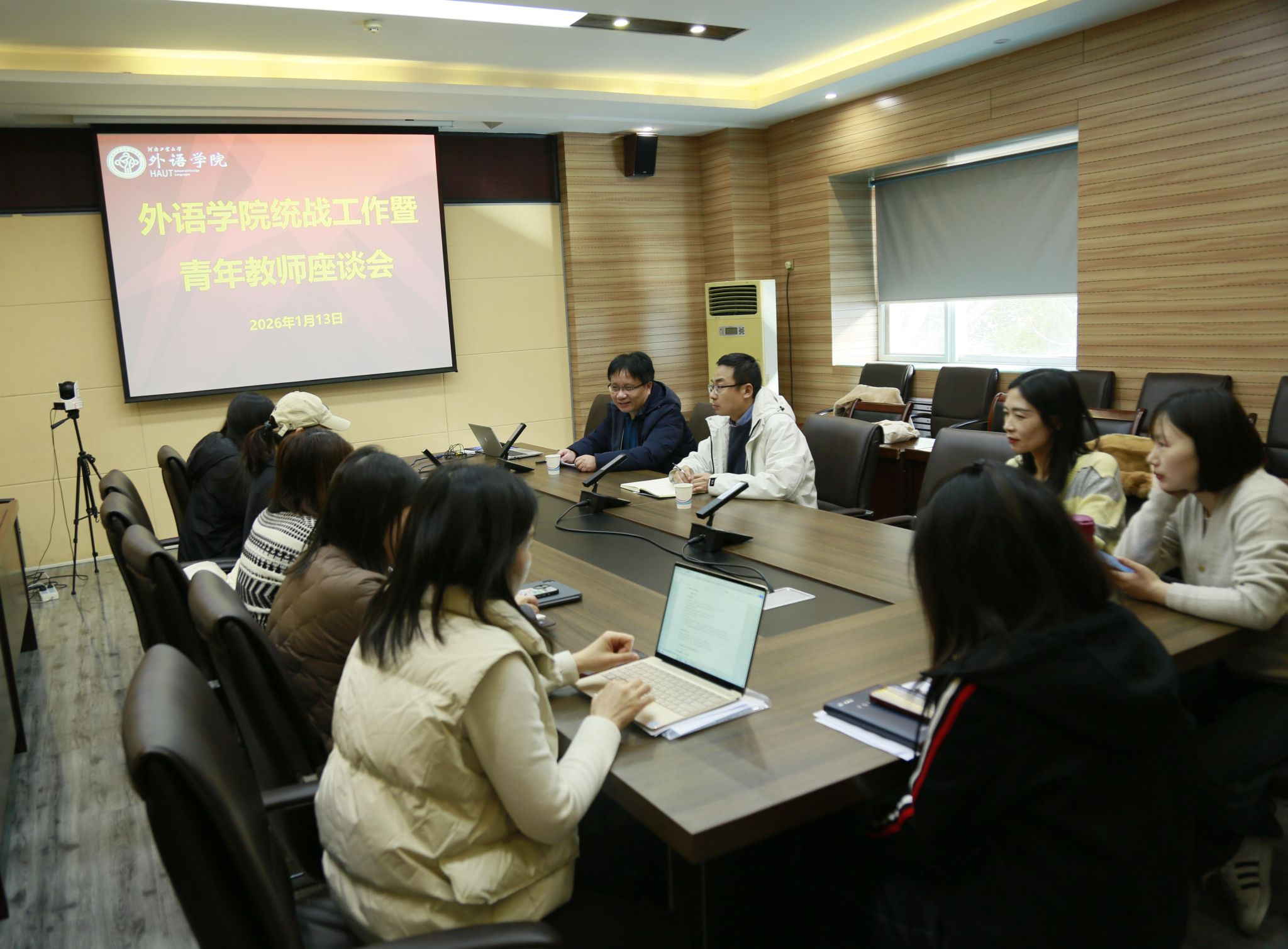 于1月13日下午在5231会议室举行了统战工作暨青年教师座谈会。来自英语系、多语种、大学外语教学部的二十余位青年党员教师和非党员教师参加座谈会。会议由副院长沈国荣主持。