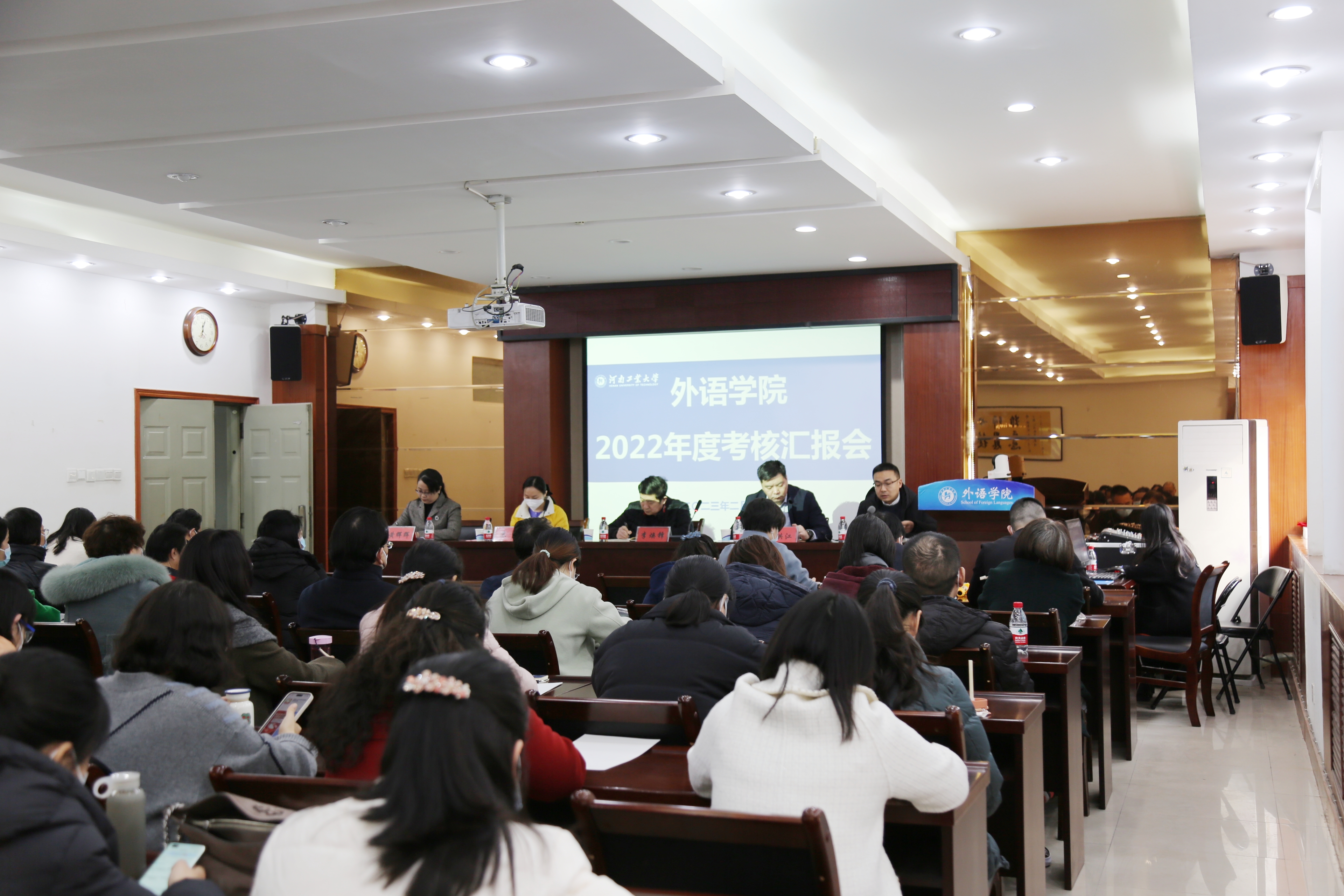 在5225会议室召开2022年度考核汇报会。校党委考核组副校长李焕锋、纪委副书记王洪江、党委宣传部苏洁老师一行到学院组织开展2022年度学院领导班子考核工作。会议由王洪江主持。