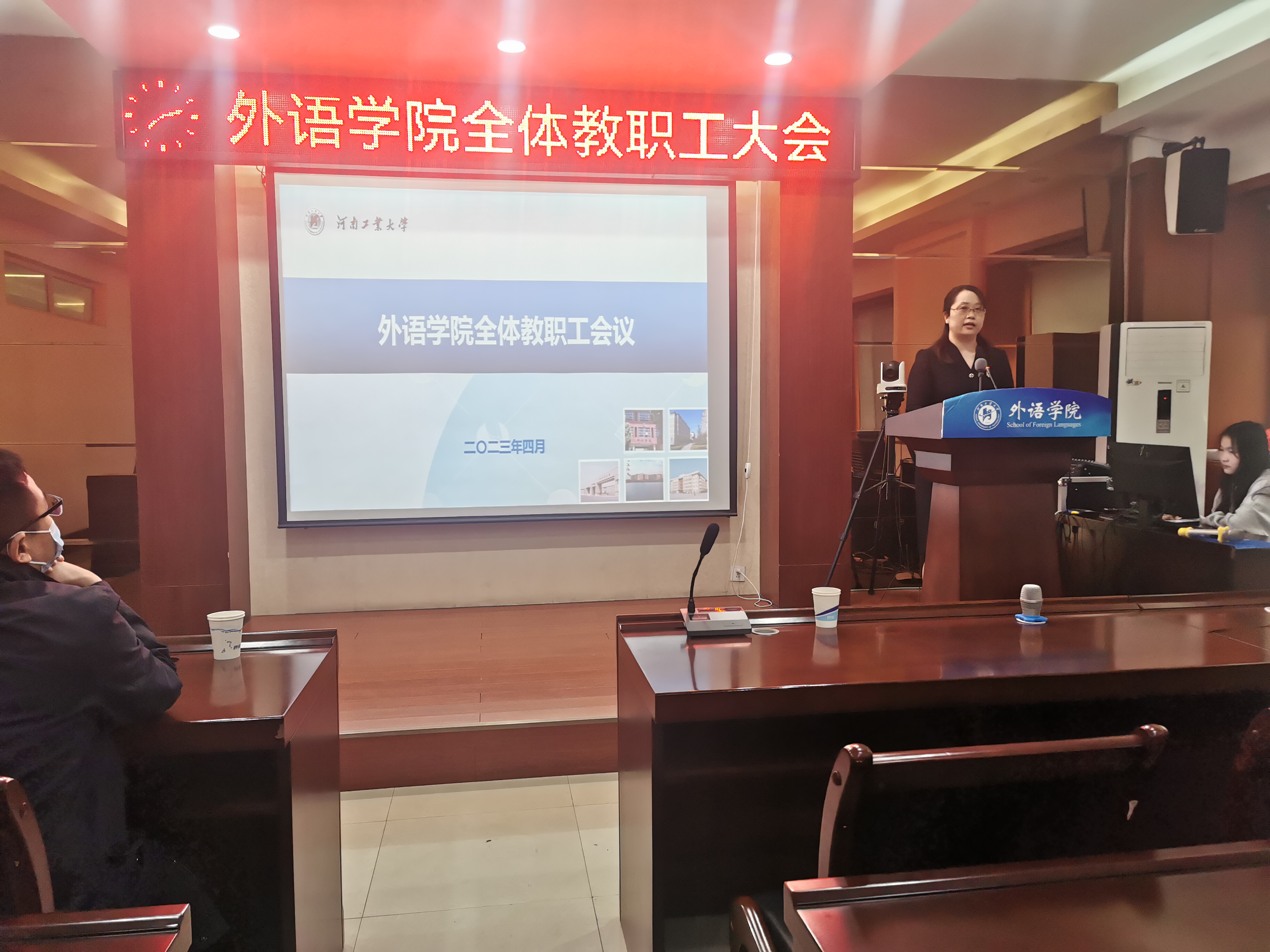 会上,黄辉辉代表学院领导班子从本科专业评价、新一轮本科教育教学审核评估、校内岗位聘任、学院年度目标任务、固定资产清查等方面安排部署学院近期重点工作。她提出具体要求:一是深刻理解专业评价指标的丰富内涵,推动评价工作有序开展;二是准确把握审核评估以评促强的关键要求,培养拔尖学术型人才;三是明确岗位聘任的要求和标准,科学设岗选岗,提升学院师资质量;四是依托资产管理系统,严格工作程序,扎实做好学院固定资产专项清查工作;五是做实做细财务工作,提高财务创收能力,高质量完成创收指标。