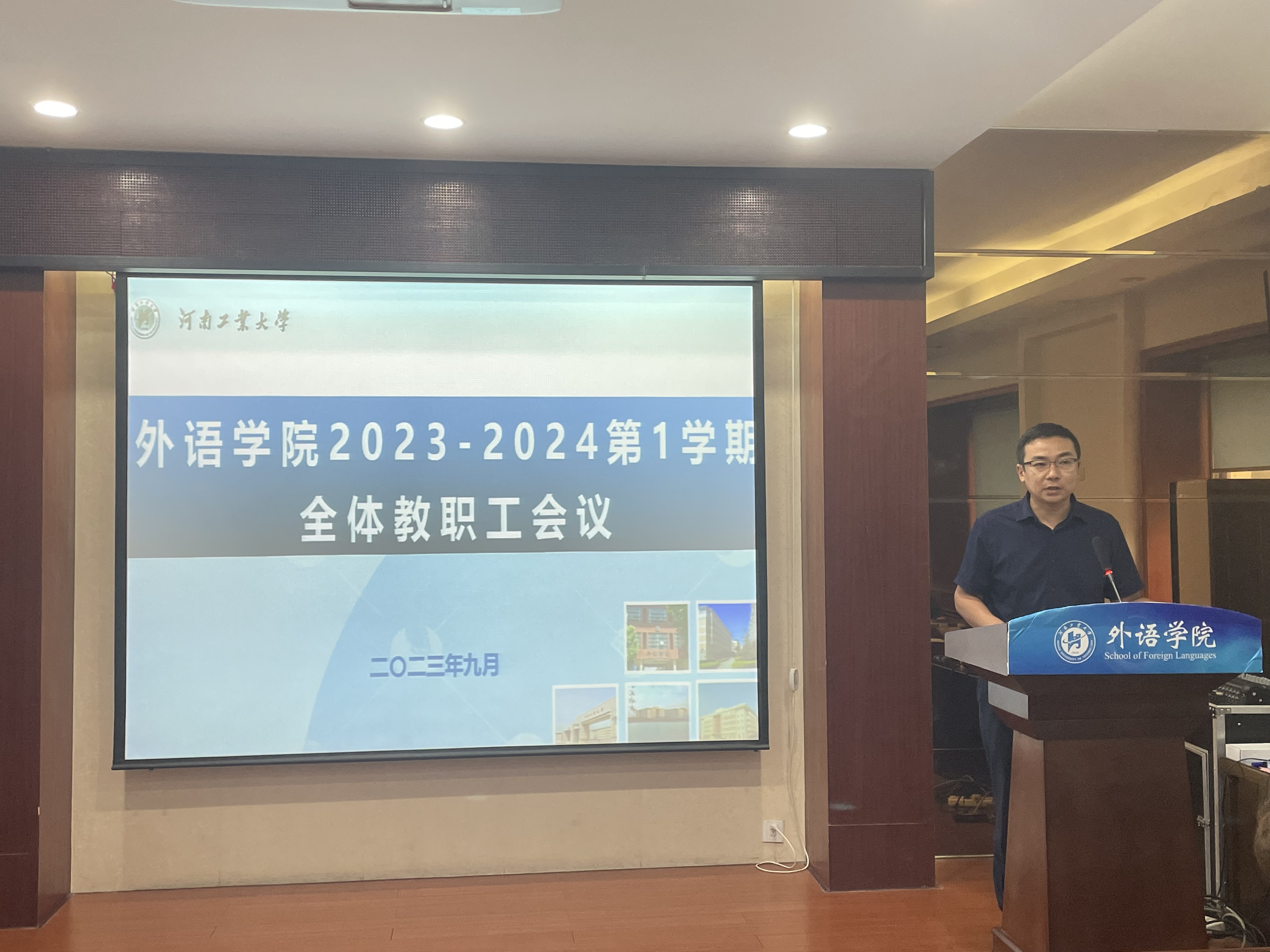 在5225会议室召开秋季学期全体教职工大会,全面部署新学期各项工作,学院领导班子、全体教职工参加会议,会议由院长黄辉辉主持。