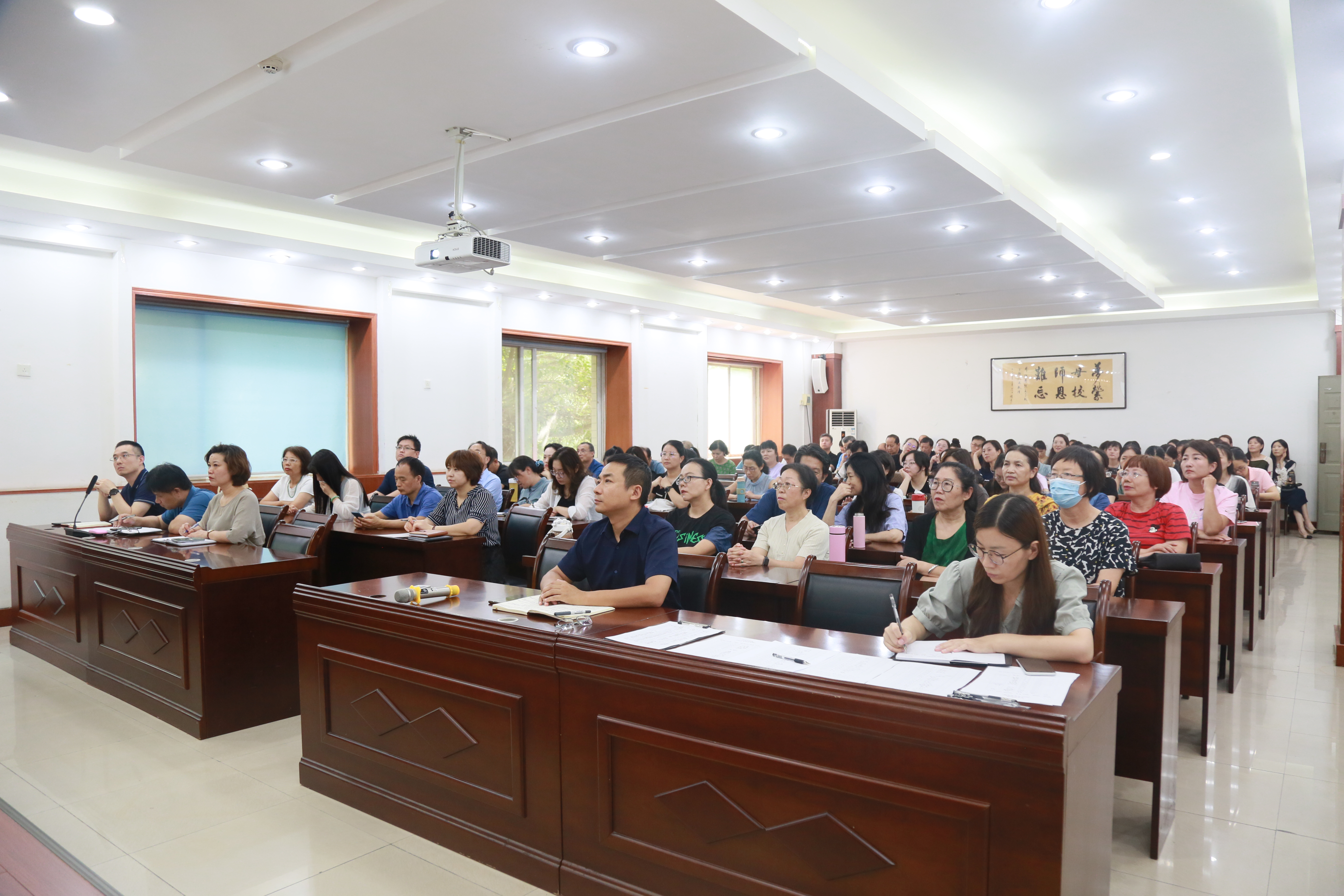 王云涛作总结讲话。他表示此次会议是暑假工作总结会,是新学期工作动员会,是下半年工作任务部署会。会议使全体教职工对于学院改革发展,在形势政策上有了新认识,在重点工作上有了新把握,在内涵建设上有了新标准,在下步发展上有了新定位、新举措。他充分肯定了假期学院各科室(系部)同志心系学校、心系岗位、心系职责,无私奉献,扎实推进各项工作,圆满完成了目标任务,确保了学院高质高效、有序平稳运行。就如何做好新学期重点工作,他提出四点要求:一是要站好三尺讲台,提高育人本领;二是要强化师德师风,坚守初心使命;三是要坚持党建引领,提升党建质量;四是要守牢安全底线,促进和谐发展。