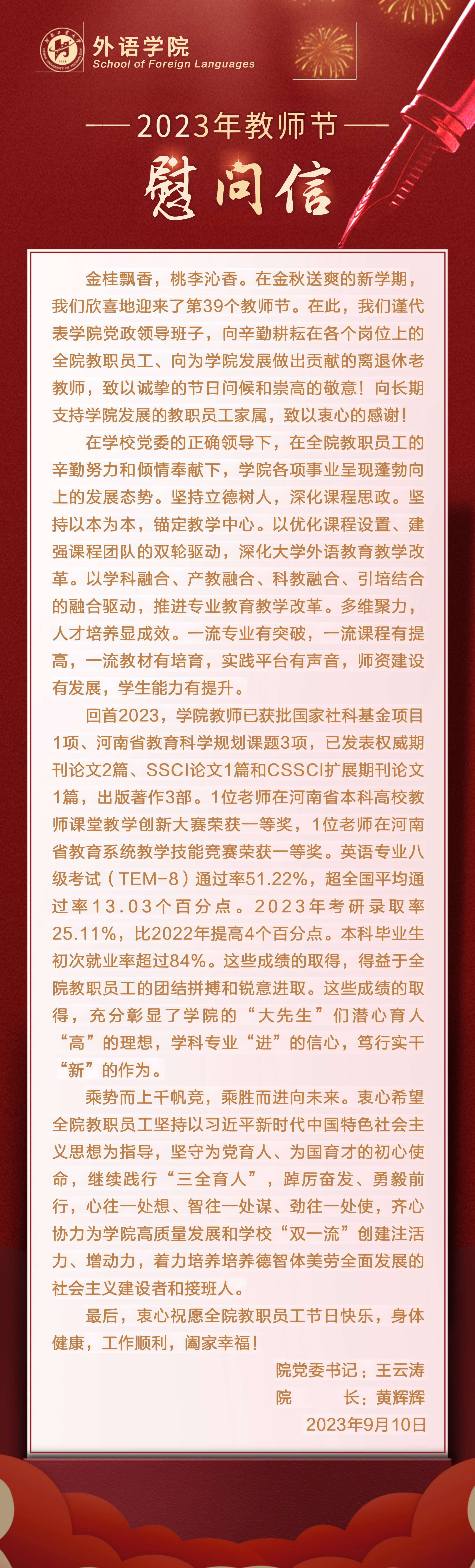 2023年教师节慰问信