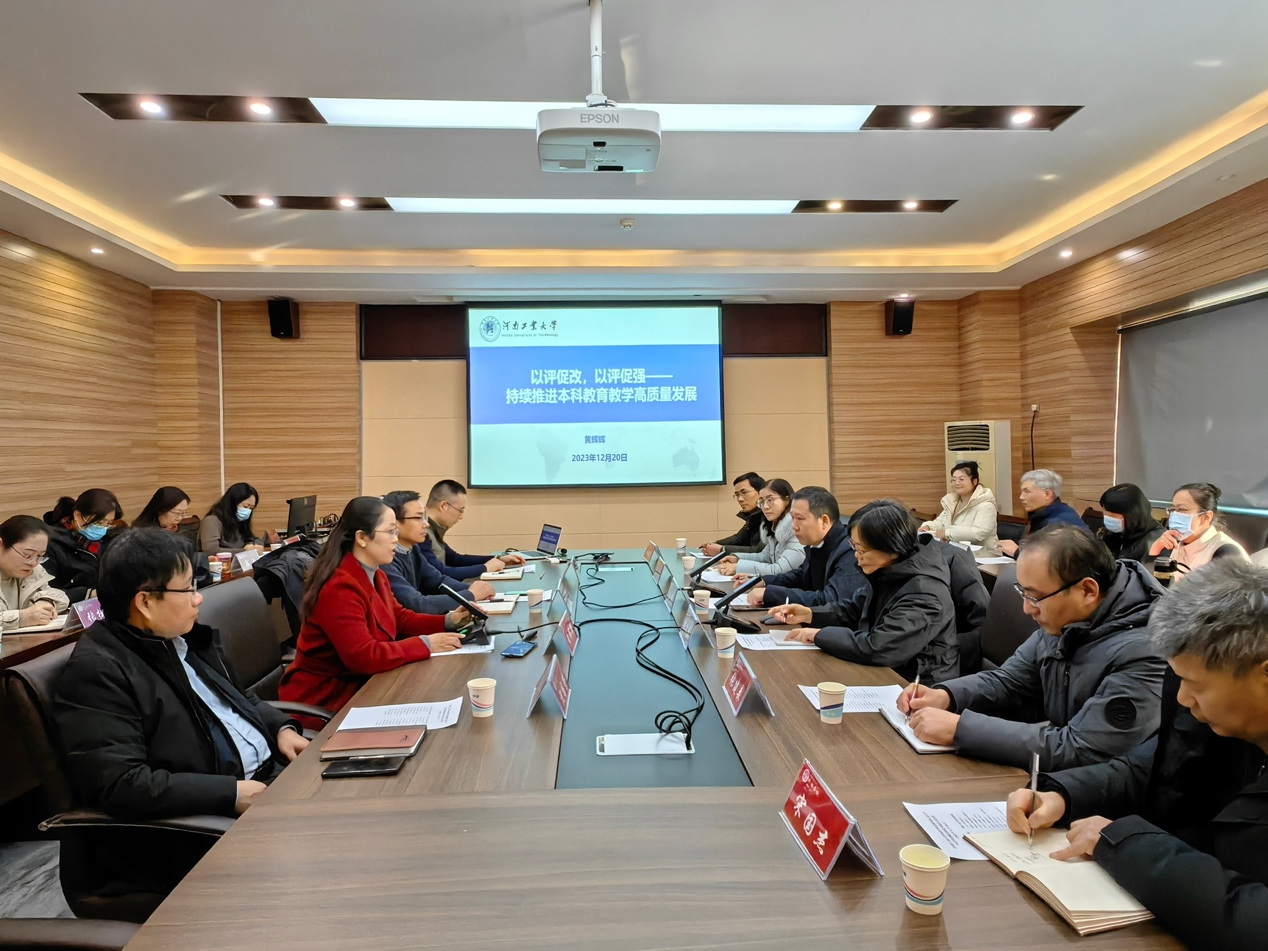 交流本科教育教学审核评估工作。学院班子成员和各系部主任、科室负责人参会。座谈会由91麻豆