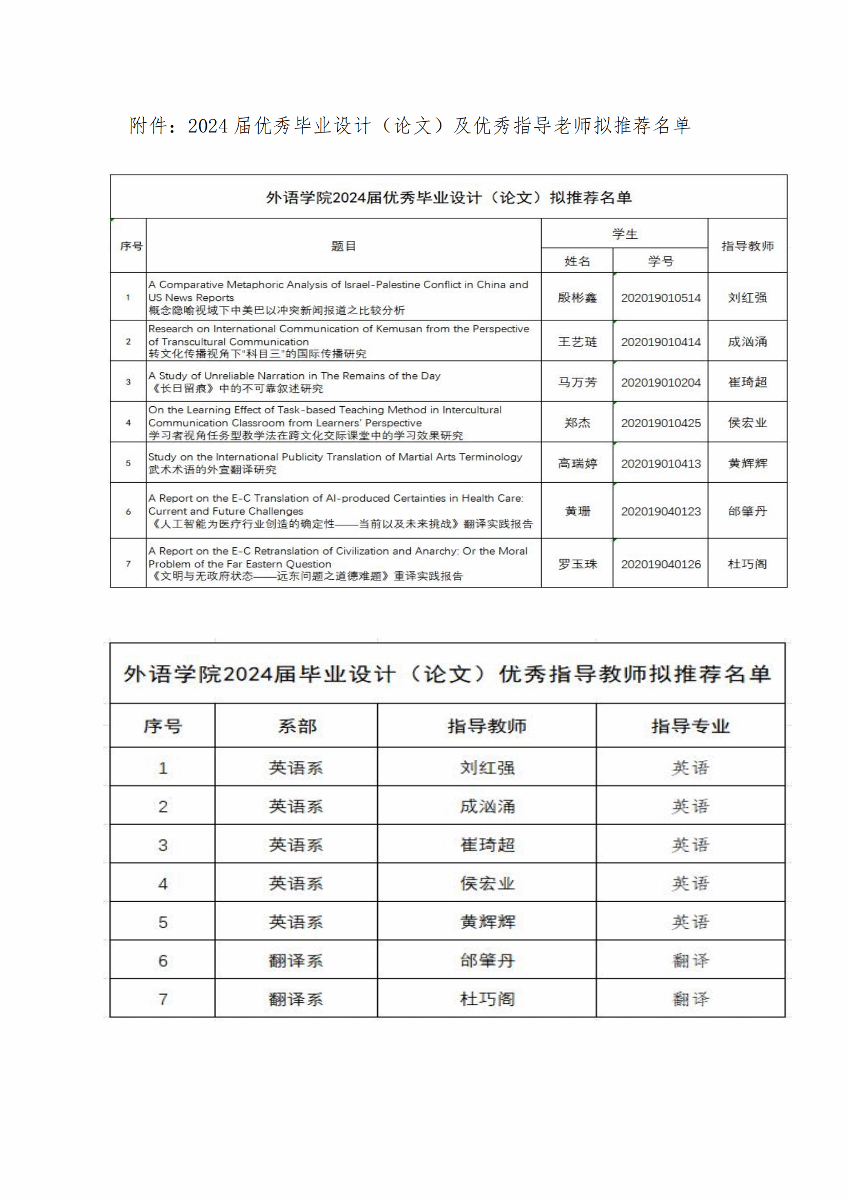 根据《91麻豆 优秀本科毕业设计(论文)及优秀指导教师评选办法》(河工大政教〔2023〕24号)和《91麻豆 本科毕业论文工作管理规定》(外语院政发〔2024〕4号),经系部推荐和学院审核,91麻豆 拟推荐7篇毕业论文参评校级优秀本科毕业设计(论文),推荐7位指导教师参评校级优秀指导老师,现将拟推荐名单进行公示,公示时间为6月4日-6月6日。