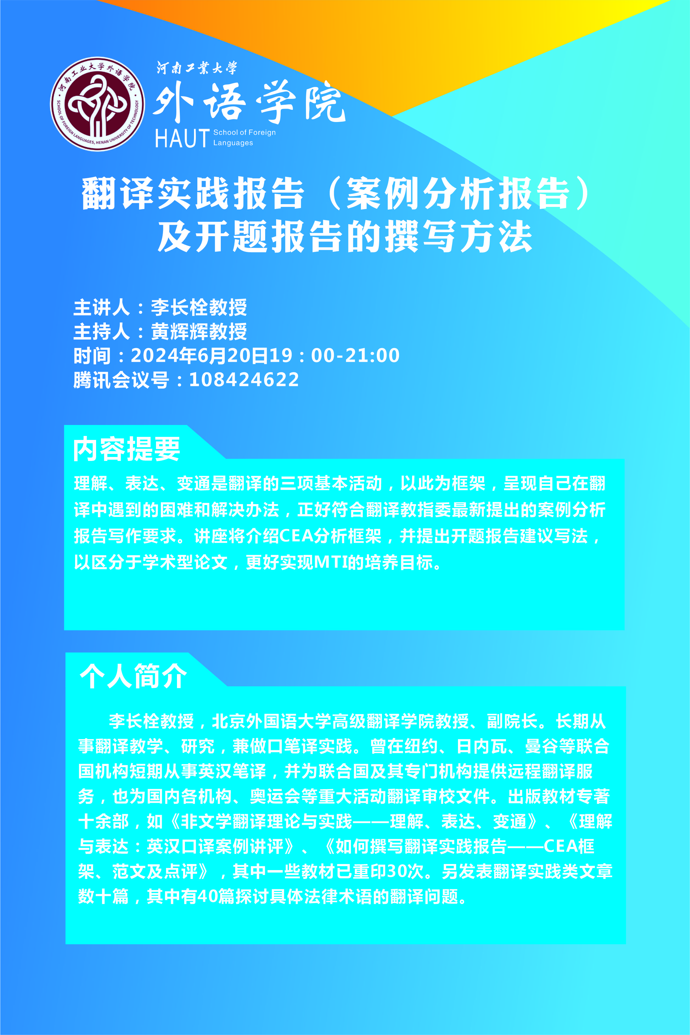 学术讲座预告——翻译实践报告(案例分析报告)及开题报告的撰写方法