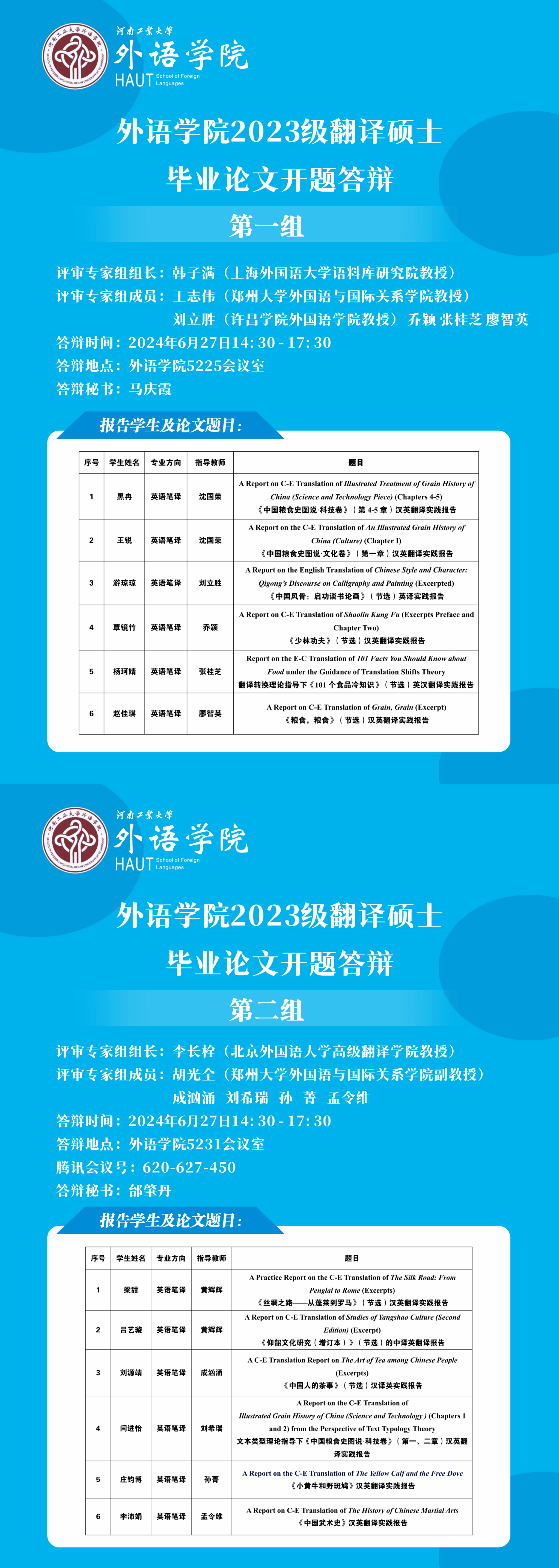 91麻豆 2023级翻译硕士毕业论文开题答辩通知