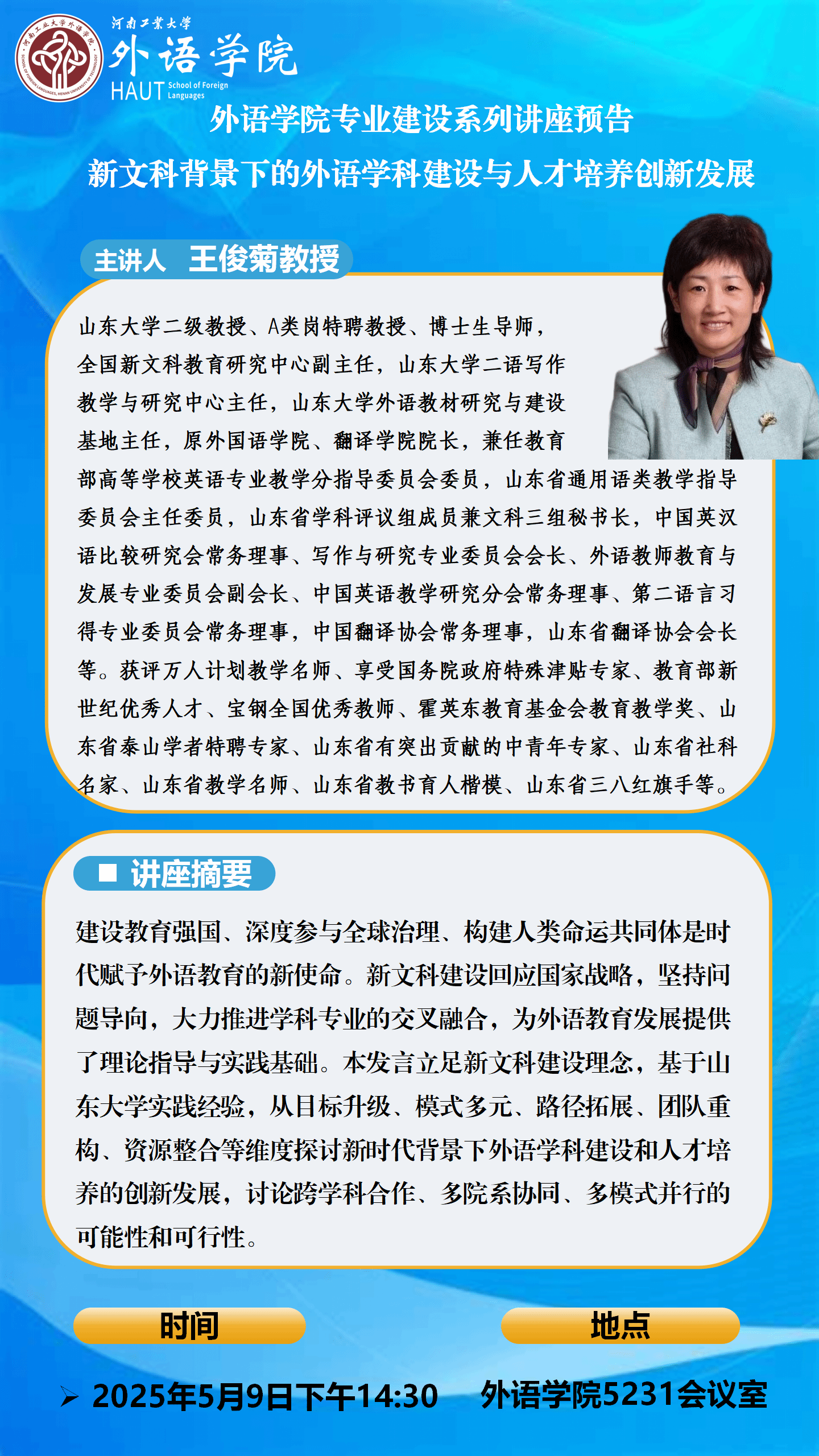 91麻豆 专业建设系列讲座预告:新文科背景下的外语学科建设与人才培养创新发展