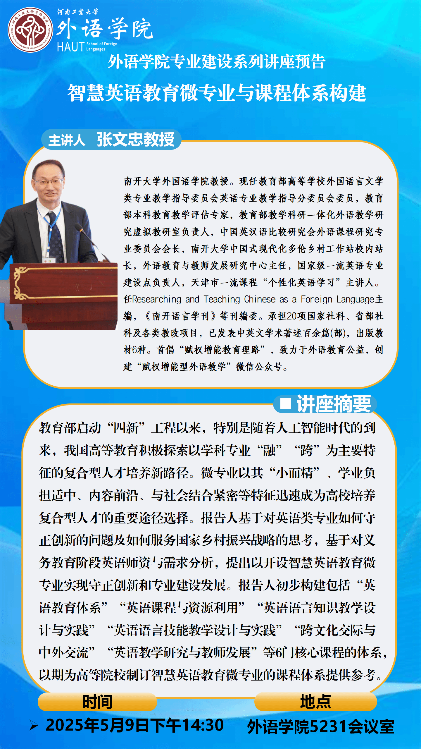 91麻豆 专业建设系列讲座预告:智慧英语教育微专业与课程体系构建