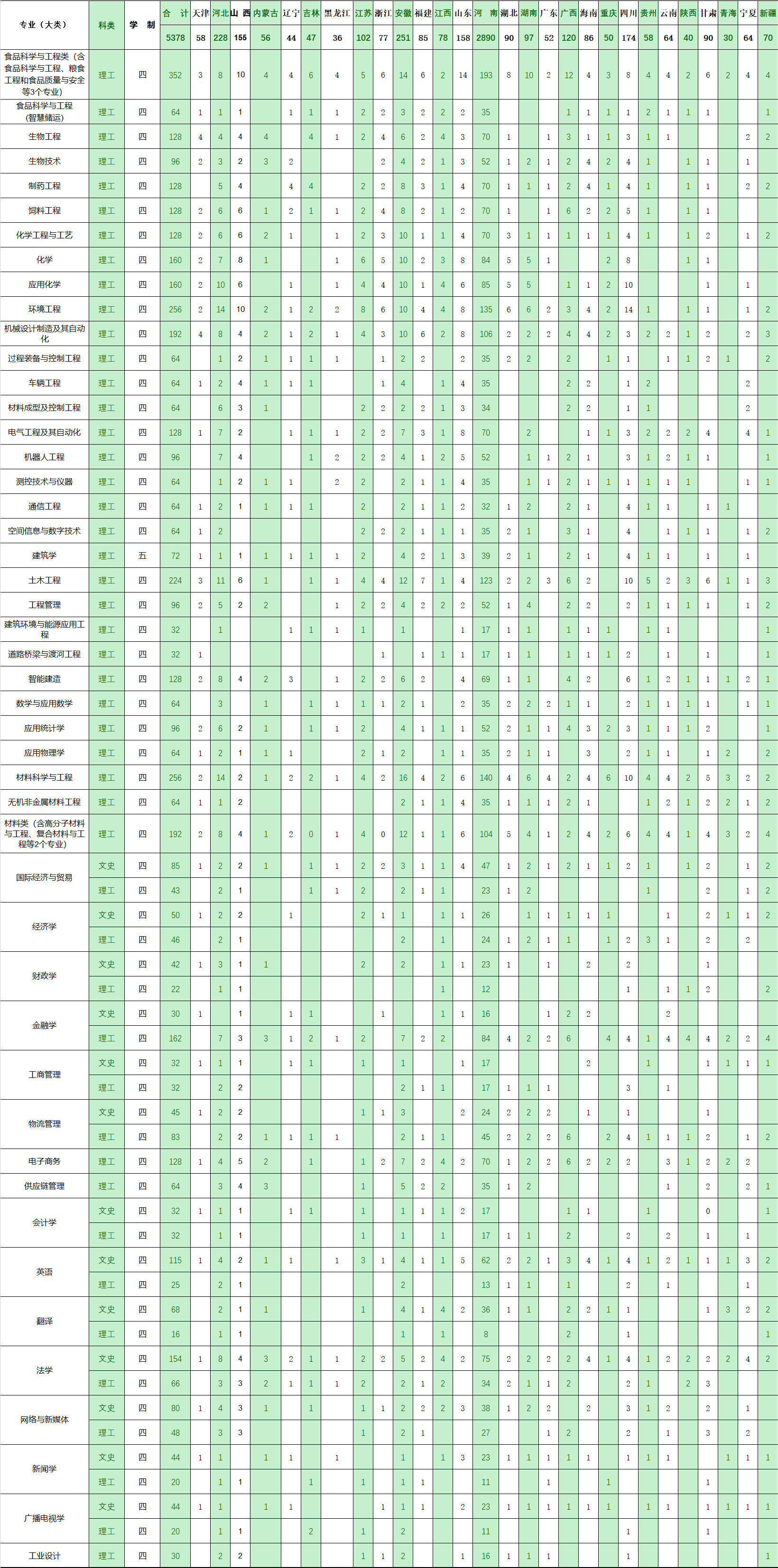 2023年91麻豆 普通本科分省份专业招生计划表