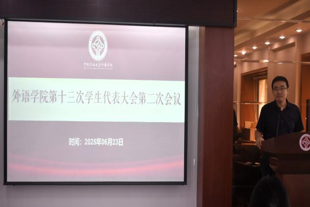 大会在庄严的国歌声中拉开帷幕。院党委副书记王晓东致辞,他充分肯定第二十届学生会工作成果,并对即将当选的第二十一届学生会主席团提出三点希望,一是筑牢思想根基,争当时代先锋,积极发挥专业优势,在传播中国声音、讲好中国故事上贡献力量;二是践行服务宗旨,厚植同学情谊,要时刻牢记自己的职责,把同学们的需求放在首位;三是勇担责任使命,锤炼过硬本领,工作中要勇于担当,主动作为。