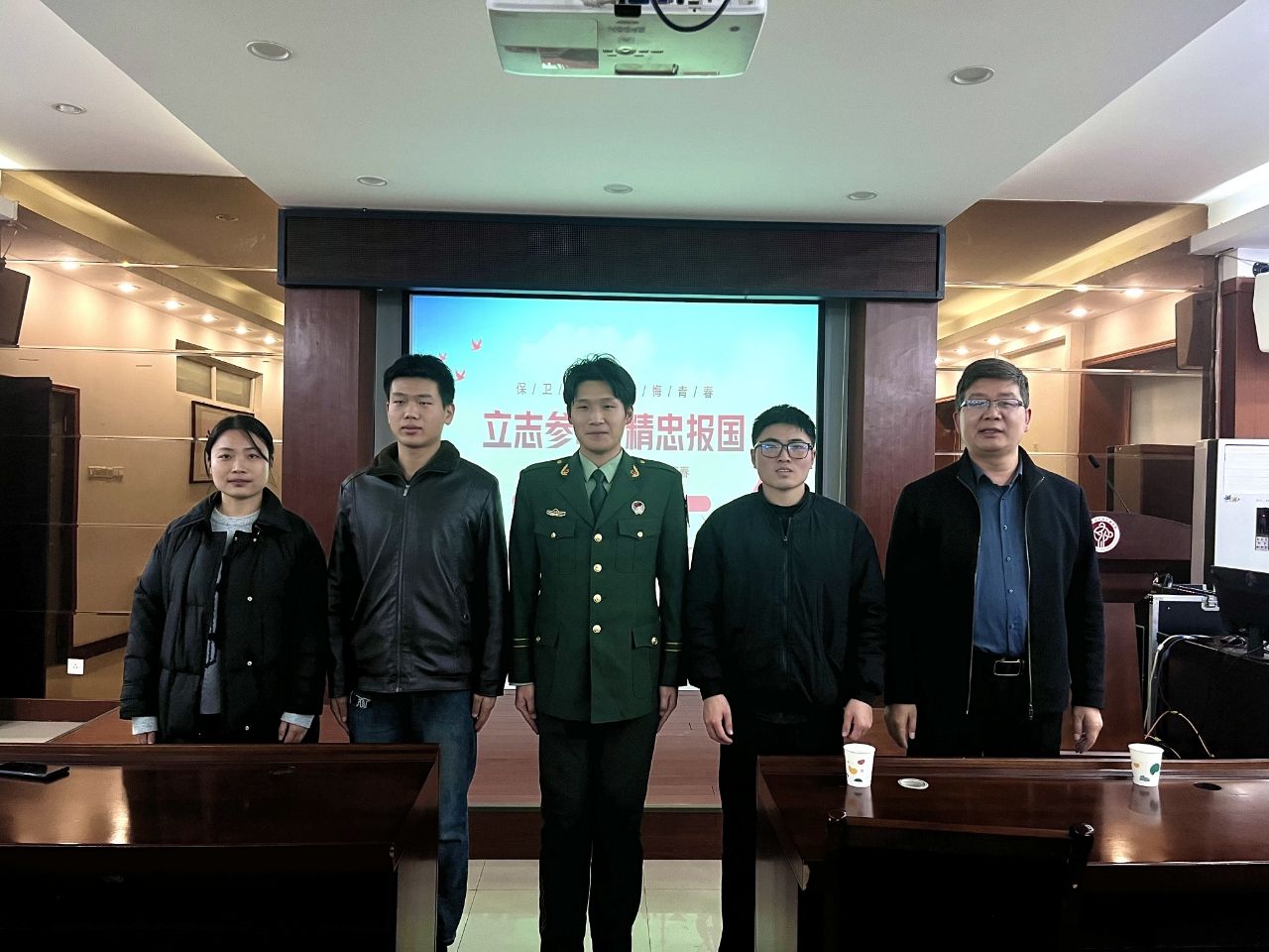 在博闻楼5225会议室举办征兵入伍宣讲会,学院党委副书记王晓东、学工办主任郭珊珊、学生干部代表和有应征入伍意向的学生参加了会议。会议特邀学校征兵宣讲团成员担任主讲嘉宾。